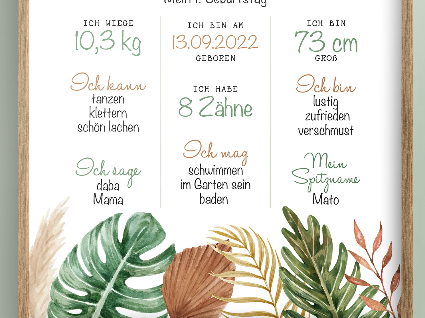 Gerne passen wir die Meilensteintafel auch für den 2. 3. etc. Geburtstag für dich an, in dem wir z.B Kategorien nach deinen Wünschen bestmöglich anpassen.