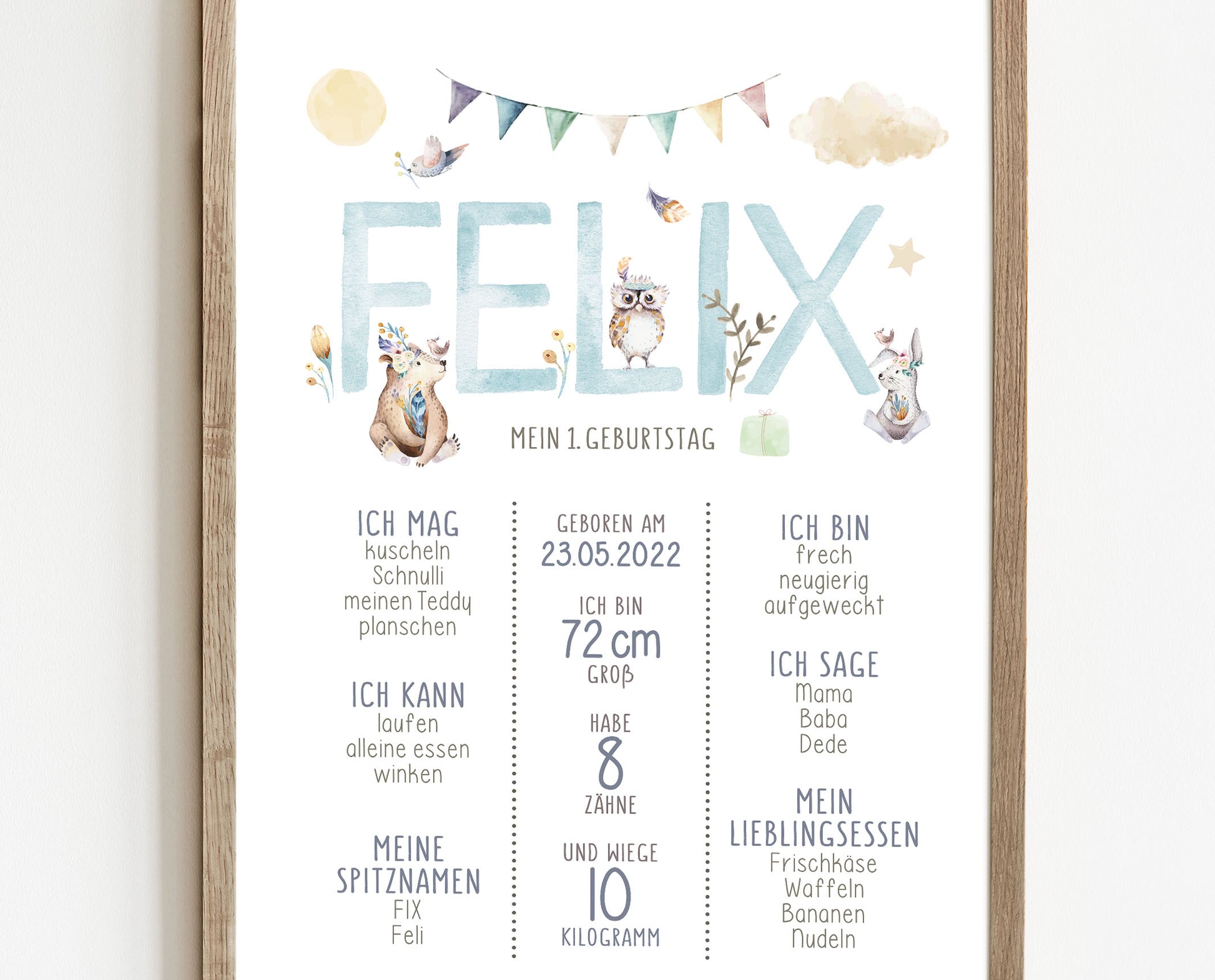 Meilensteintafel zum 1. Geburtstag, personalisiert, Waldtiere, Geburtstagsposter 6